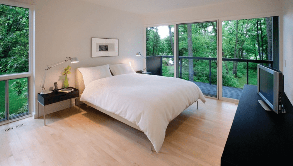 Đây là một quy tắc quan trọng mà tất cả các gia chủ cần biết để tránh rủi ro. Nguyên nhân chính là cửa kính thường là nơi thu hút nhiều ánh sáng nên các tia sáng mạnh có thể tác động đến chất lượng giấc ngủ của các thành viên trong gia đình. Trong những trường hợp bất khả kháng hoặc khi phòng ngủ có diện tích nhỏ, bạn nên trang bị thêm rèm che cho cửa. Mục đích là để bảo vệ giấc ngủ của gia đình khỏi ảnh hưởng của ánh sáng.